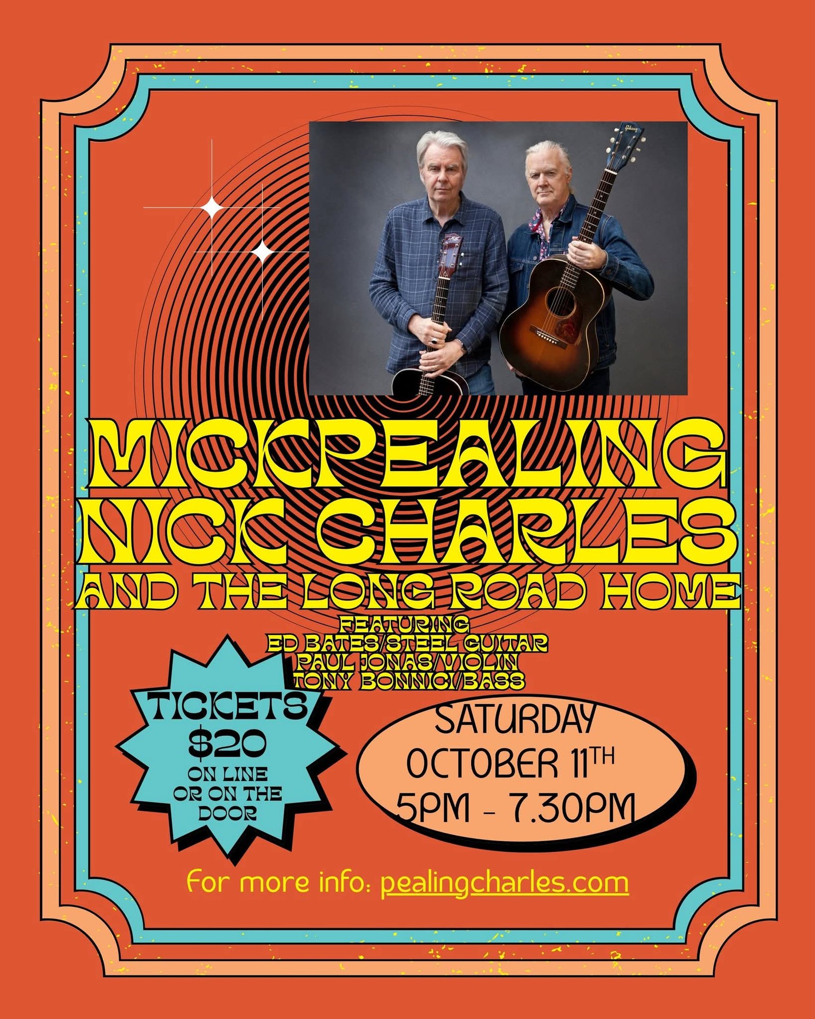 Mick and Nick once again present their fabulous band The Long Road Home featuring Ed Bates on steel guitar, Paul Jonas on violin and Tony Bonnici on bass.